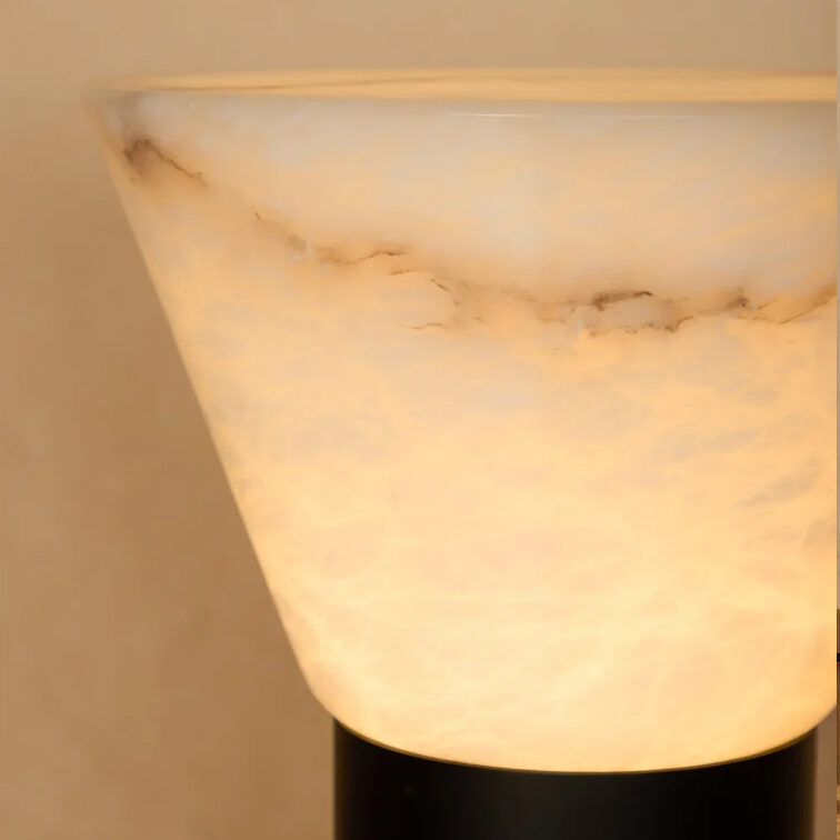Table lamp in alabaster, patinated brass structure.